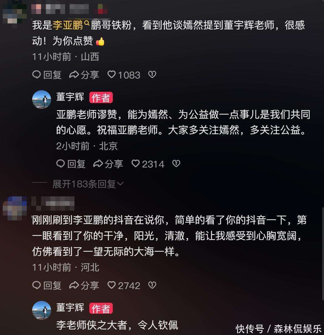 在此之前,李亚鹏曾在2月7日的直播中公开感谢了董宇辉的捐赠。董宇辉在得知嫣然医院面临关停危机后,迅速通过中介向医院捐赠了可观的资金。李亚鹏特别强调,尽管他们之前并未有过接触,但董宇辉的捐款金额非常可观,并且远超100万或200万。一个人能够用真金白银做出这样的善事,值得我们每个人的尊敬。李亚鹏在直播中说道。